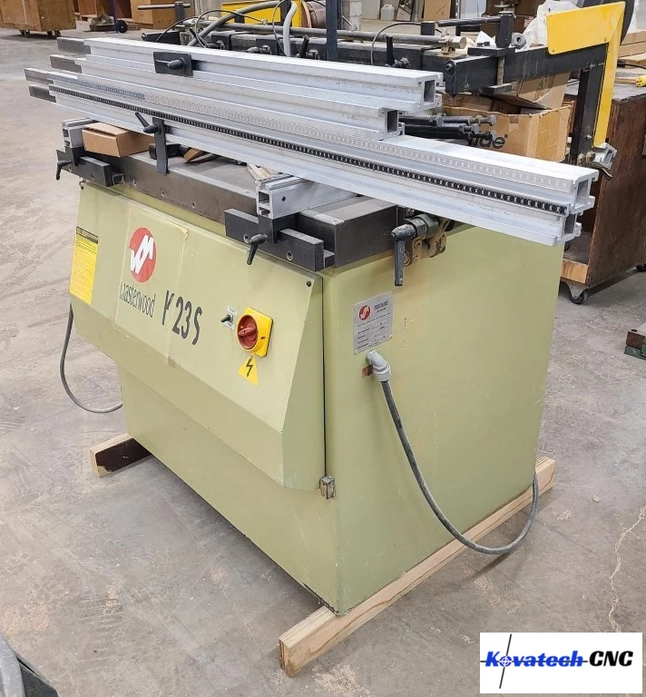 MASTERWOOD Model: K 23/S Multiple boring machine with 23 drills, horizontal and vertical, quick release chucks ,Center distance between chucks mm 32, Max drilling depth mm 75, 2.5 hp motor 575 volt. Overall dimensions mm 1100 x 1300 x 1100 h Weight kg 505